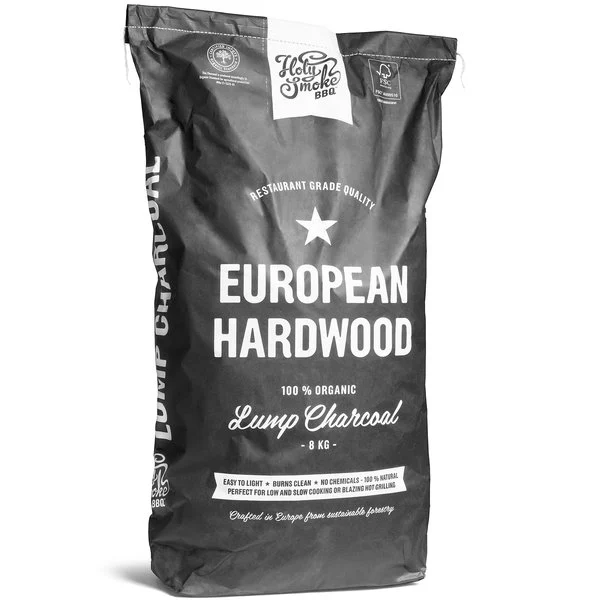 Grillkull fra Holy Smoke BBQ, laget av bøk, agnbøk og eik. Den nøye utvalgte kombinasjonen av løvtrær gir en effektiv drivstoffkilde med lang brenntid. Kullet gir maten din en mild og aromatisk smak, og brukes av både restauranter og BBQ-elskere.
