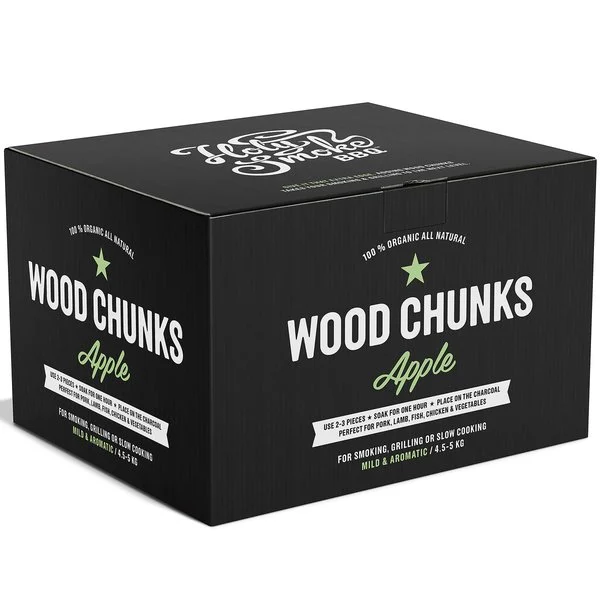 Holy Smoke Wood Chunks er perfekt til røyking av kjøtt, både på Kamado, masterbuilt og på kullgrill. Finnes i tre forskjellige varianter, eple, eik og or(alder). Eple vil gi den mildeste smaken og er flott på kylling, svin osv. Eik gir en mer intens smak og passer godt til storfekjøtt. Or er mer søt og mild, perfekt til fisk, kylling og grønnsaker.