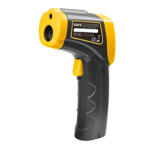 MĂĄl temperatur i pizzasteinen underveis i oppvarmingsprosessen. Ideell temperatur for pizzasteking er 380-450Ëšc.