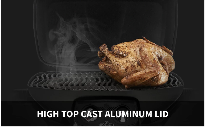 - Høyt WEATHERÂGUARD™  lokk i støpt aluminium tilpasset grilling av større kjøttstykker