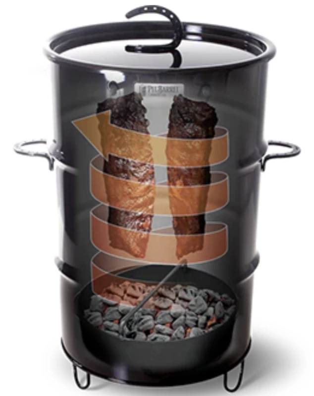 Pit Barrel® Cooker 22,5″ (57cm) er den perfekte grillen til alle store oppgaver, fra direkte til indirekte røyking. Pit Barrel® Cooker kan takle alt fra brisket til grønnsaker, enkelt og bra. Med de smarte løsningene og måten varmen behandler kjøttet, er kapasiteten enorm. Her kan du bruke grillrist eller du kan henge kjøttet i smokeren, noe som gjør at du får plass til enormt mange spareribs f.eks.