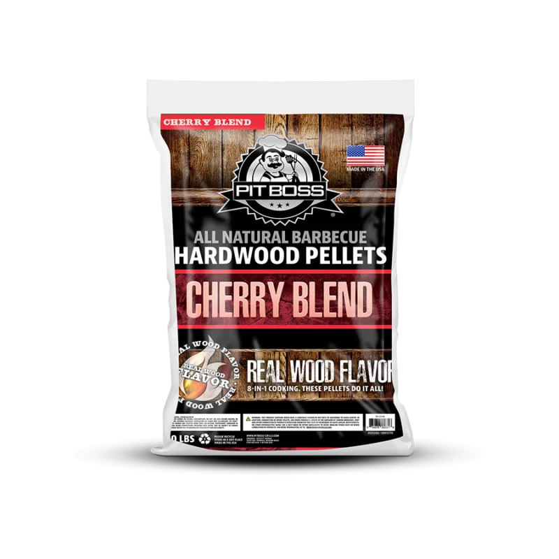 Pit Boss Cherry Blend Hardwood Pellets tilbyr aromaen av kirsebærtre, en mild og fin røyk som er ypperlig til kylling, lam, svin og ikke minst ved baking i pellets smokeren.