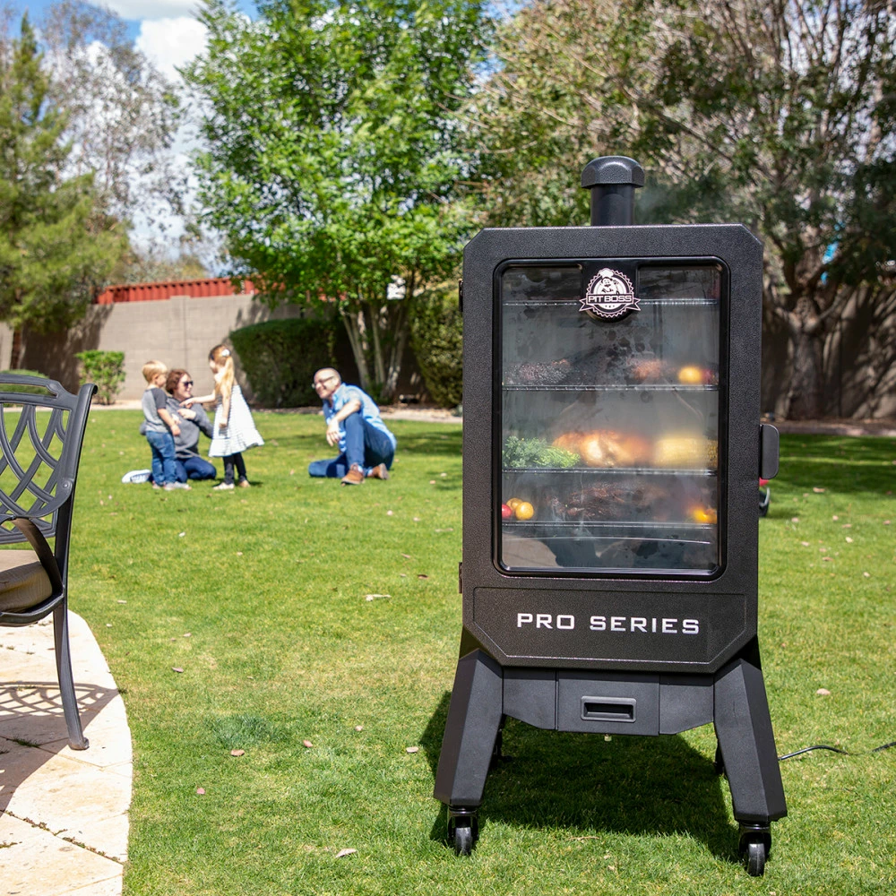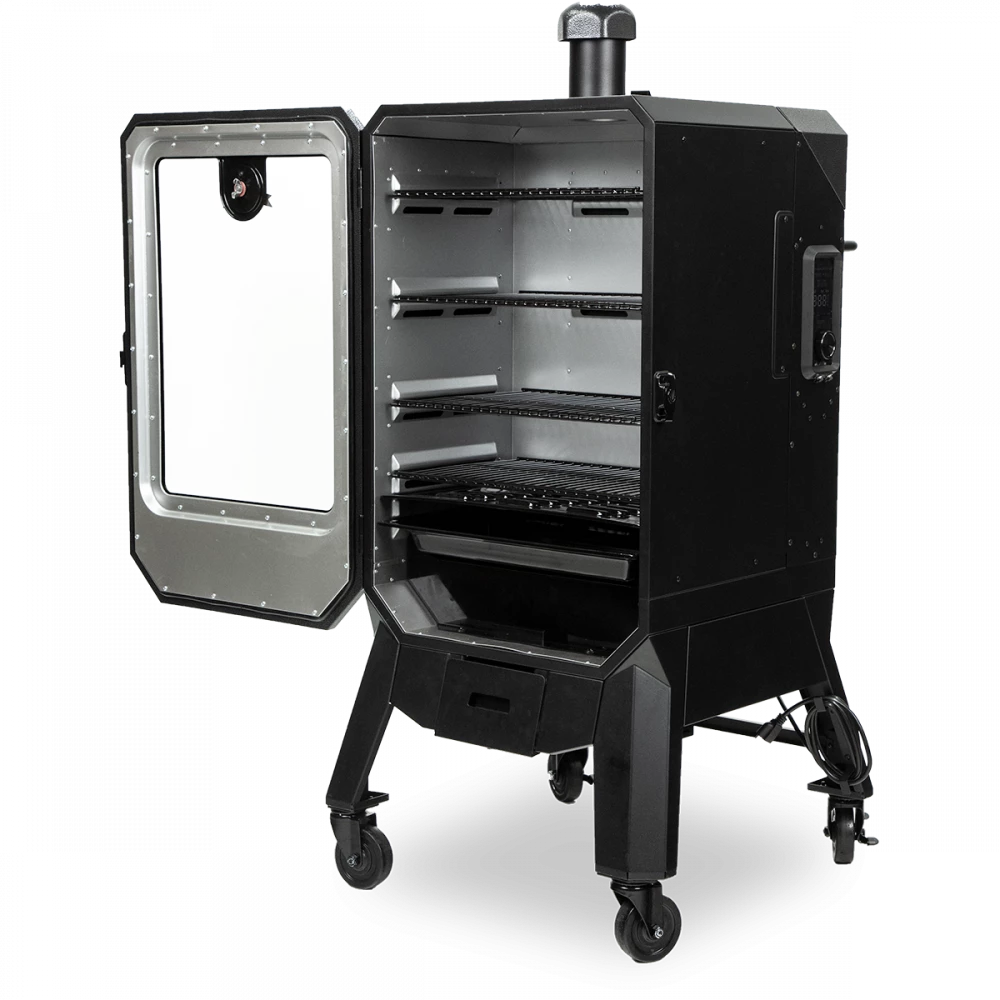 Smokeren har både Wi-Fi og Bluetook tilgjengelig, så du har full kontroll med Smoke IT-app som brukes av Pit boss. Kommer også med termometer som kan puttes inn i kjøttet for kontroll på kjernetemp.